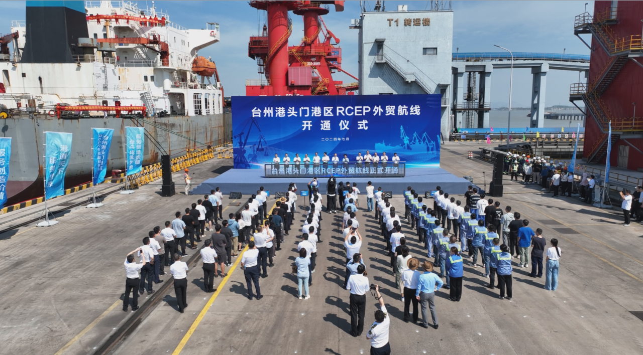 7月11日,台州港头门港区,来自印度尼西亚的“协海永欣”货轮完成作业后驶离三号泊位,标志着该港区RCEP外贸航线正式开通。