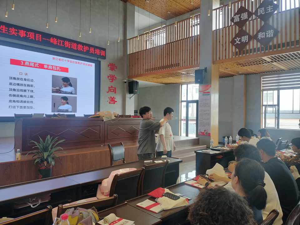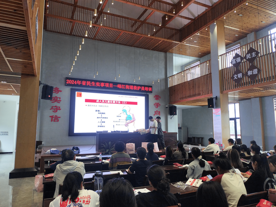 为继承和发扬“人道、博爱、奉献”的红十字会理念,贯彻落实红十字会“人道、公正、中立、独立、志愿服务、统一、普通”的七项原则,5月20日,峰江街道社会事务办协同街道退役军人服务站工作人员,对辖区内的村民和退役军人,开展2024年省民生实事项目峰江街道救护员培训。