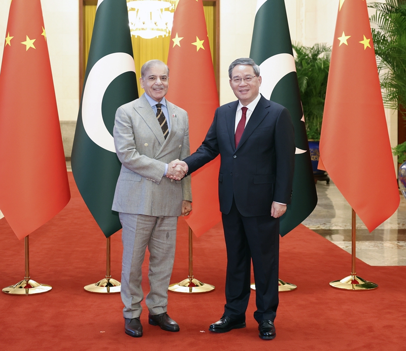 李强表示,中国和巴基斯坦是全天候战略合作伙伴。建交73年来,双方始终真诚相待、患难与共,铸就了坚如磐石的铁杆友谊。习近平主席将会见总理先生,为中巴关系发展作出规划和指引。中方始终将巴基斯坦置于周边外交优先方向,愿同巴方一道努力,弘扬传统友谊,拓展互利合作,加快构建新时代更加紧密的中巴命运共同体,更好惠及两国人民。