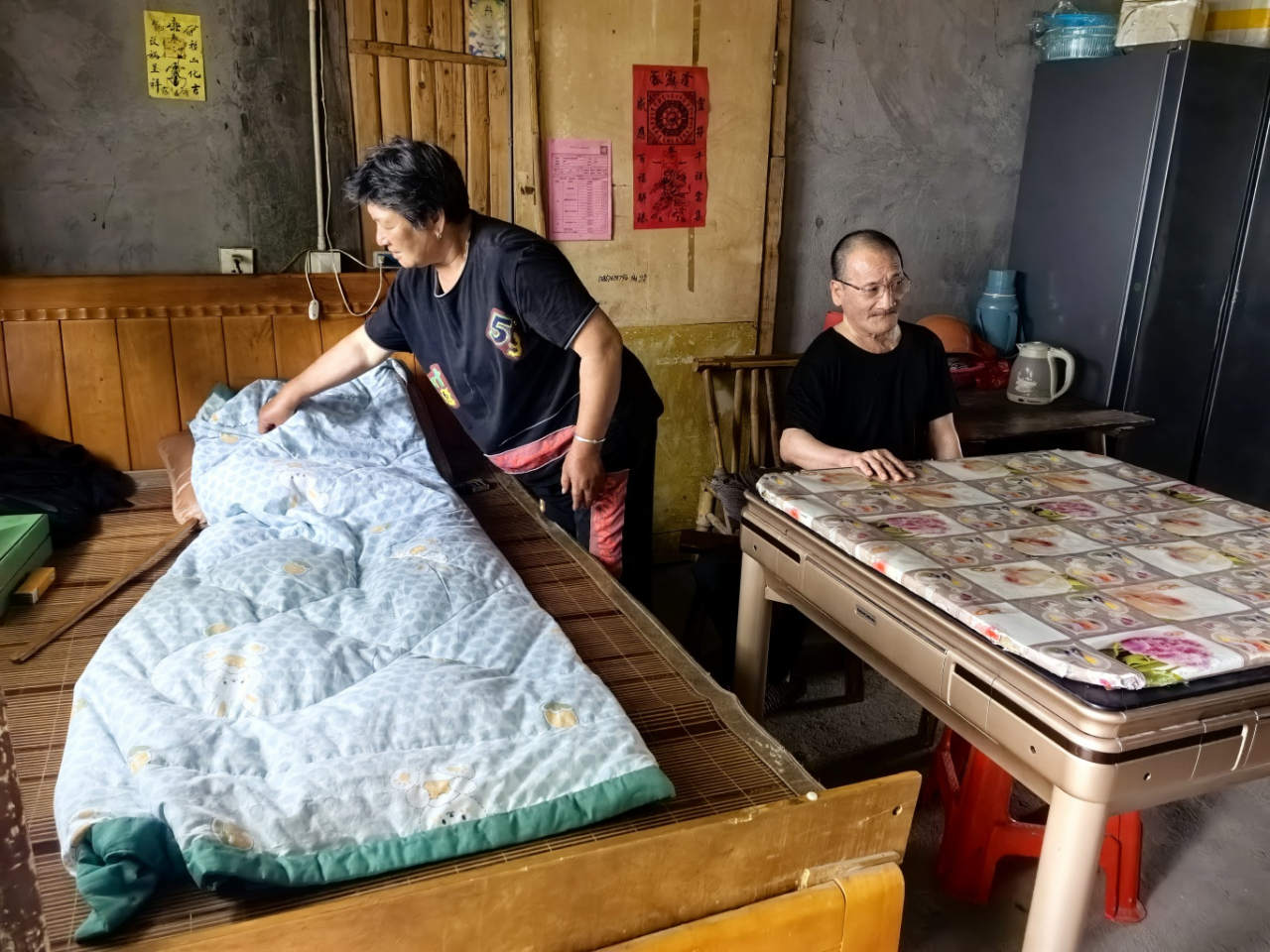 30平方米左右的小屋,家具不多,但是整理得井井有条。杨华明正坐在凳子上看电视,杨夏连站在床边一边叠被子一边与哥哥聊天。