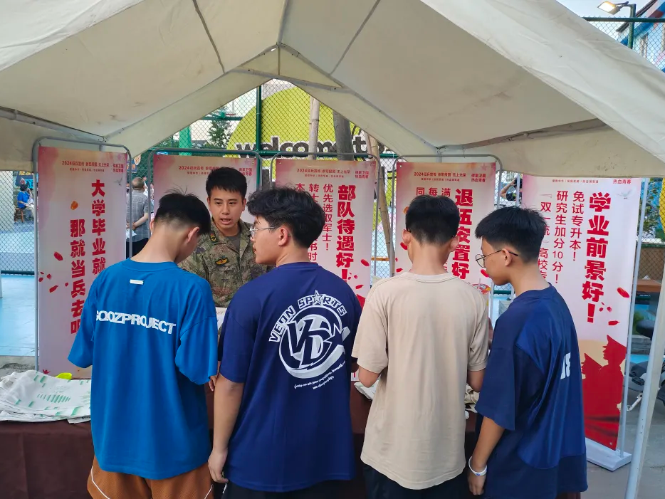 “像我这样的近视眼是不是就没有机会参军入伍了?”面对高二学生小徐及其朋友的疑问,在场的专武干部微笑着给出了肯定的回答:“现在的入伍身体条件已经更加人性化,只要你的裸眼视力达到一定标准,或者通过提前视力矫正,你同样可以穿上军装,实现自己投身军营的梦想。”说着,他还将一份详细的宣传资料递给了小徐,鼓励他多了解、多思考。