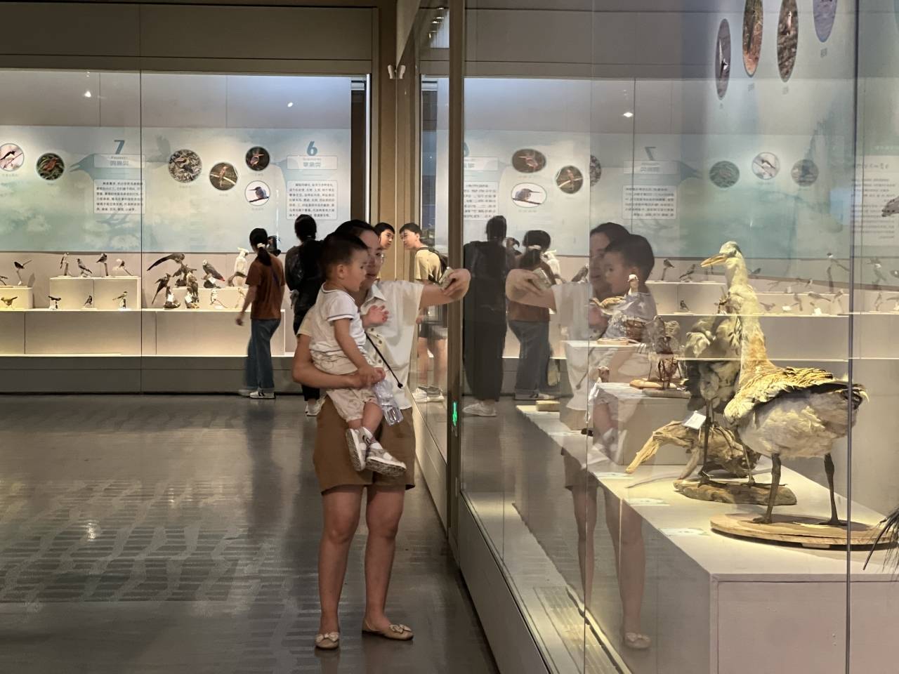 “这个专题展集中展出了华南梅花鹿、中华穿山甲、豹猫等国家一、二级重点保护物种的标本,我儿子都看入迷了。”“带孩子来博物馆避暑,既能遛娃,又能长知识。”王女士满脸笑意。