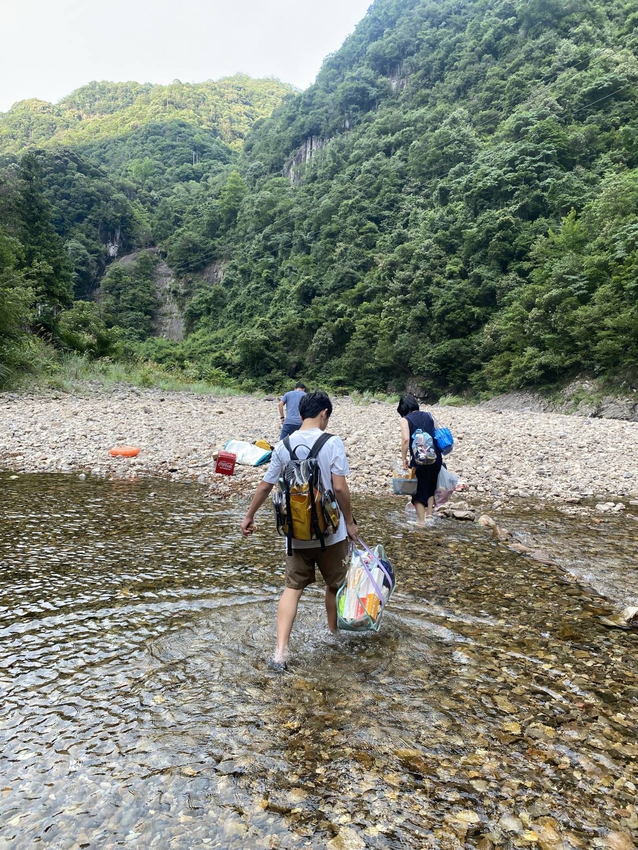 不管从哪来,大家都统一着装:穿着可以玩水的拖鞋或凉鞋,泳衣或短裤等。7日当天,市民沈先生也拖家带口前往淡竹享受“清凉”,他们还约了朋友。“车开到景区,气温显示降到了31℃,的确凉快不少。”