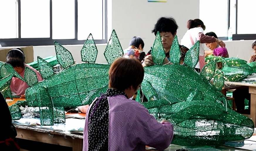 眼前这款恐龙造型户外灯饰就是今年企业根据客户需求定制的新款,从产品造型、灯珠品质等方面入手,设计研发团队经过7个多月的打磨,最终才拿下这笔订单。